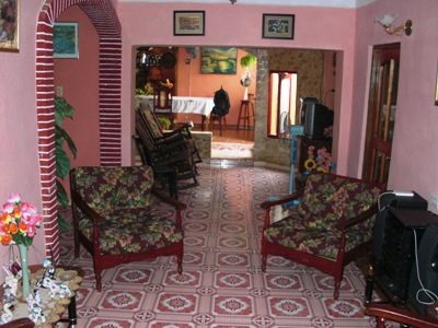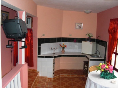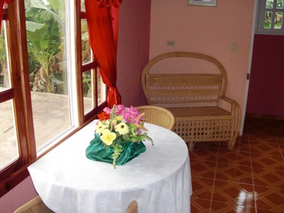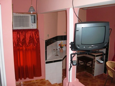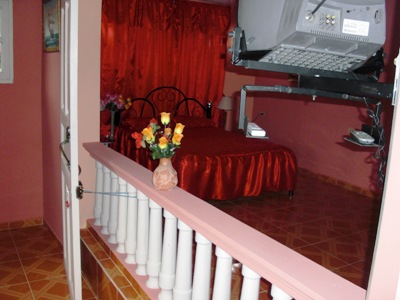 Die gesamte erste Etage wird an Kunden vermietet. In den Zimmern gibt es Fernseher, Klimaanlage, Badezimmer mit Dusche, Kühlschrank und eine kleine Kochecke. Der Zugang zu dem Zimmer erfolgt über eine separate Treppe. Eine Parkgelegenheit für einen Leihwagen ist auf dem abgeschlossenen Gelände vorhanden. Diese Pension hat eine überdachte Terrasse, eine Bar, einen Grillplatz und einen wunderschönen Garten. Die Besitzerin Mircelia ist eine sehr gute Köchin und kann auf Wunsch auch ausgezeichnete Mahlzeiten servieren. Ihr Sohn Asbel ist Somelier (Weinkellner) in einem Hotel und berät sehr gerne bei Aktivitäten und Ausflügen in der Umgebung. Mircelia und Asbel sprechen Englisch.